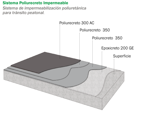 - Poliurecreto 300 AC: Recubrimiento a base de poliuretano de dos componentes para ser aplicado sobre POLIURECRETO 350.